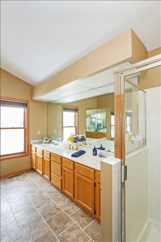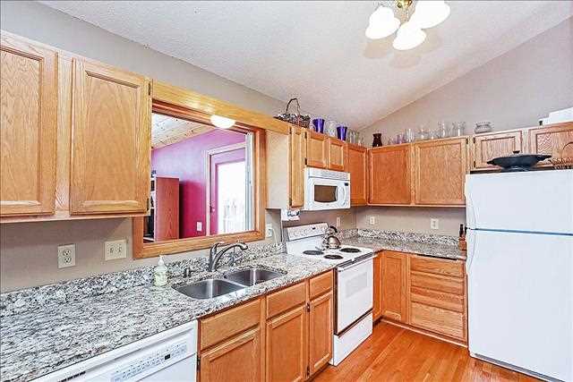 This beautiful home has new granite and fixtures in the kitchen, Breakfast nook and side desk, Hardwood floors in kitchen, Dining room and entry, Dramatic Vaulted ceilings, New carpet in sunroom with fireplace and leads to deck overlooking the back yard. Deck is prewired for a hot tub. Full Master bath with separate tub and shower. Additional 3/4 bath on same level. Just updated LL bath, and additional large Family room/exercise/bonus room on lower level. Recent new roof, Venmar air system and other upgrades. This home is walking distance to Top-Rated Harriet Bishop School and parks, with many well kept homes all around. Stop and see this before its too late.